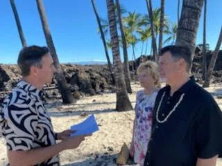 “When we decided to renew our vows for our 20th anniversary, Hawai’i, where we honeymooned, was the obvious place. Having you as our minister was a serendipitous blessing. . . Thank you so much for your presence.”